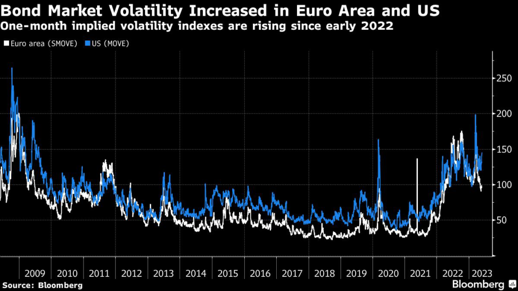 (Bloomberg) — The euro area’s markets could see “stressed liquidity” due to heightened economic uncertainty, monetary policy normalization and tighter financial conditions, according to the European Central Bank.