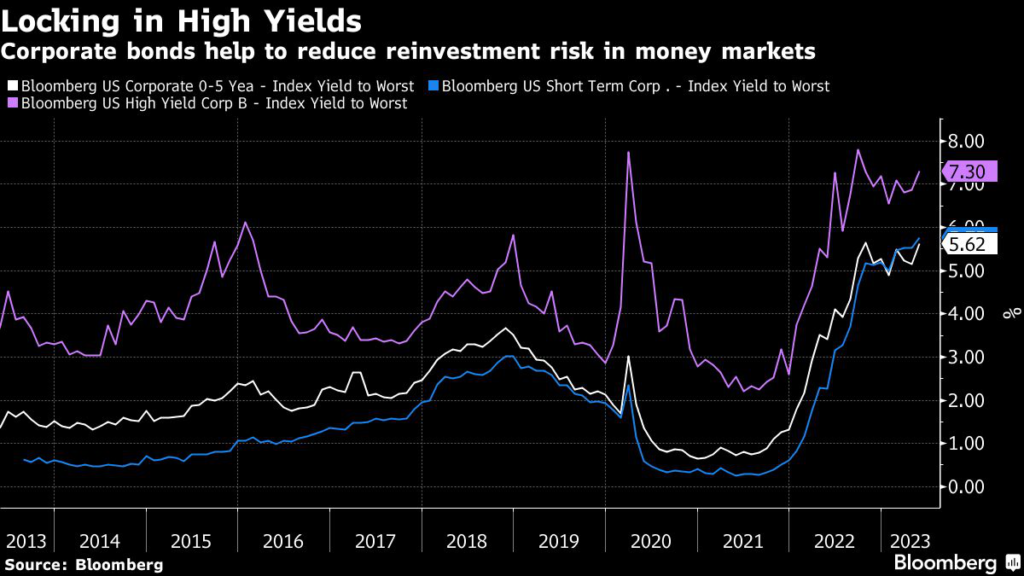 (Bloomberg) — Investors looking to generate more than 5% yield in money market securities should buy corporate bonds maturing in five years or less to lock in those returns for longer, according to Picton Mahoney Asset Management.