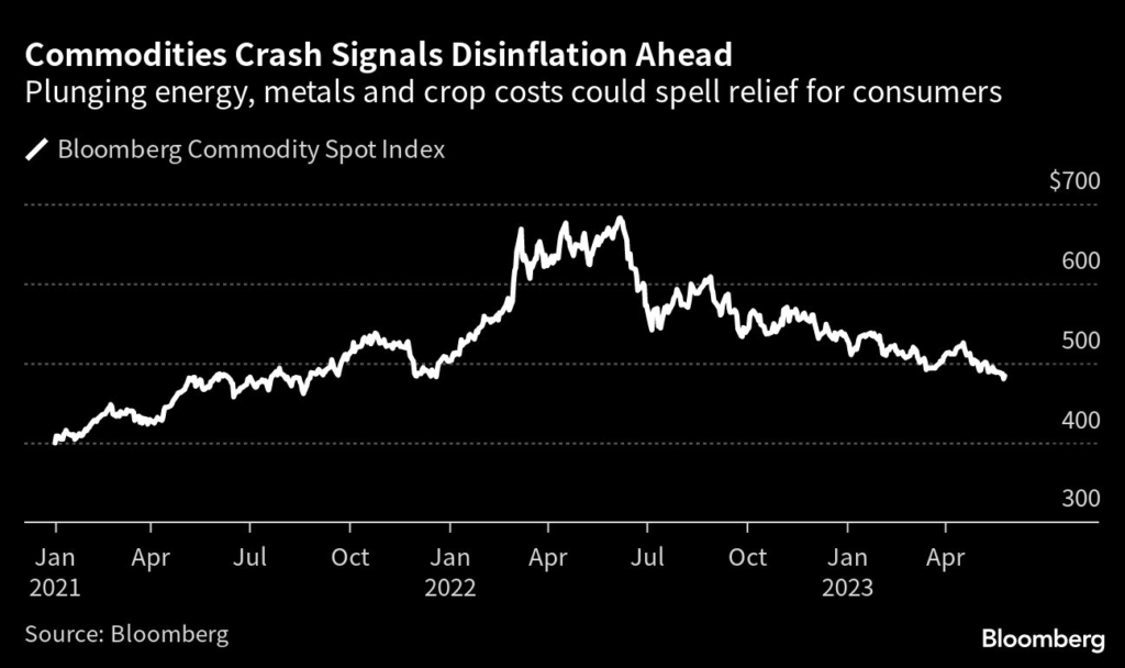 (Bloomberg) — From copper to wheat to natural gas, the cost of some of the world’s most important products is crashing, bringing long-awaited relief for consumers that were stung by last year’s soaring prices.