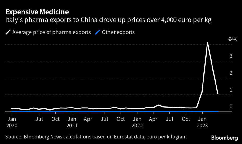 The mysterious boom in Italian exports to China is linked to Pfizer Inc.’s plant producing the anti-Covid drug Paxlovid.
