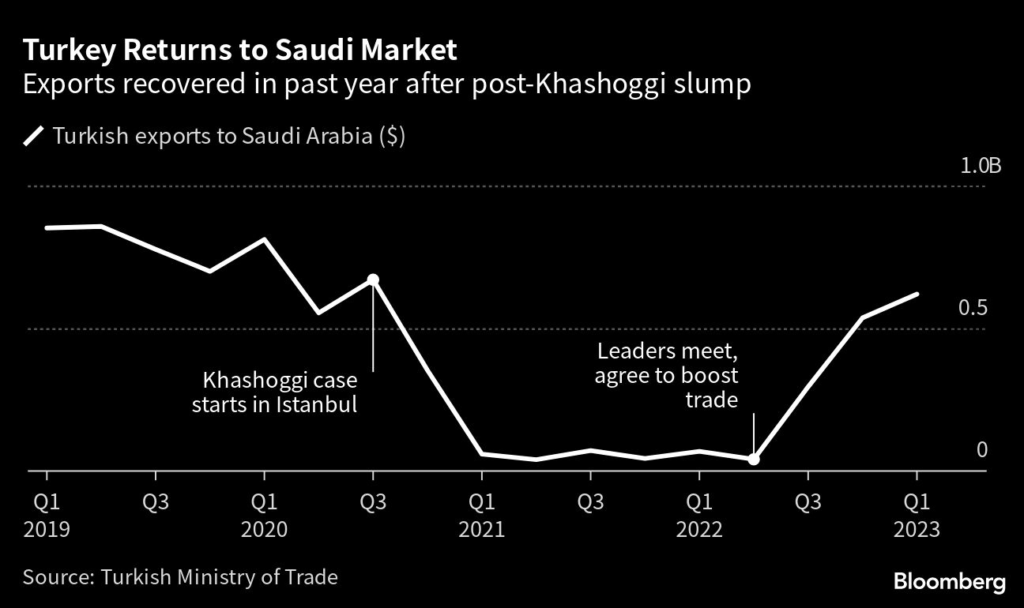 Erdogan and Saudi Crown Prince Mohammed Bin Salman agreed in June last year to boost economic and defense ties, ending years of enmity over the 2018 killing of Washington Post columnist Jamal Khashoggi by Saudi agents in the kingdom’s Istanbul consulate.