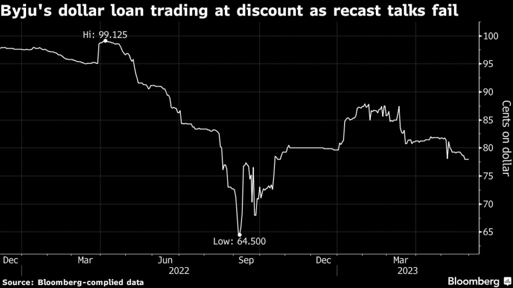 (Bloomberg) — Creditors to Byju’s, India’s most valuable startup, have pulled out of negotiations with the company to recast a $1.2 billion loan, posing a new setback to the beleaguered tech firm, according to people familiar with the matter.