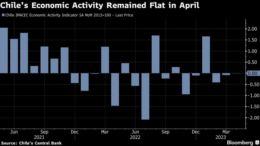 Chile’s economic activity remained flat in April, stoking bets that the central bank will start to lower the benchmark interest rate from an over two-decade high as early as July.