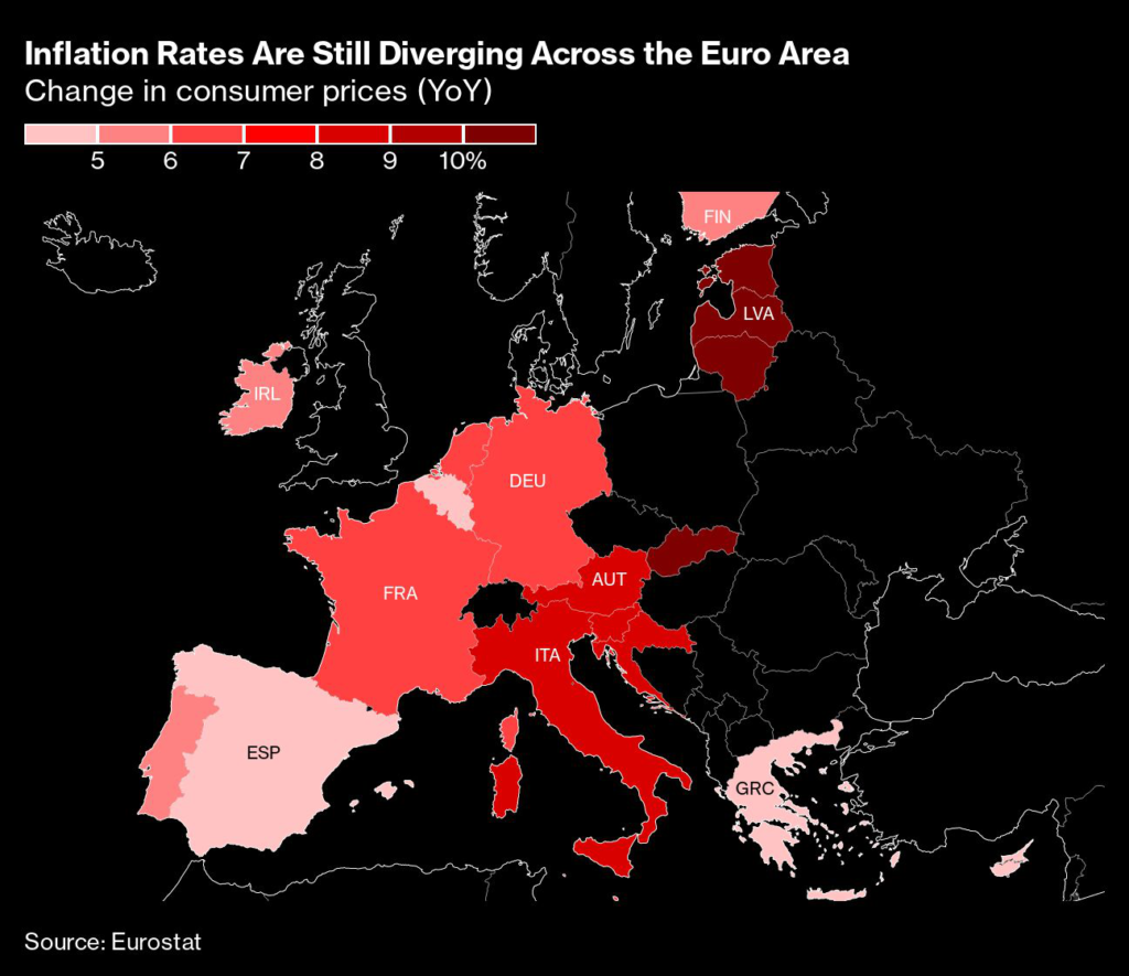 The data include big slowdowns for the 20-nation euro area’s top four economies and will be welcomed by politicians and monetary policymakers alike as the continent’s citizens struggle with a bruising cost-of-living crisis.