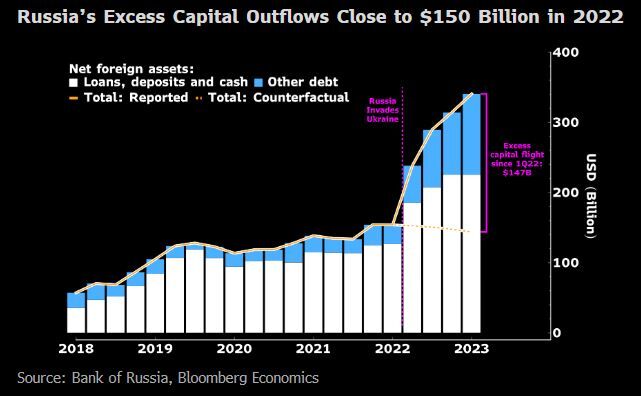 In the months following the invasion, households and companies have also been moving billions of dollars in funds to banks abroad.