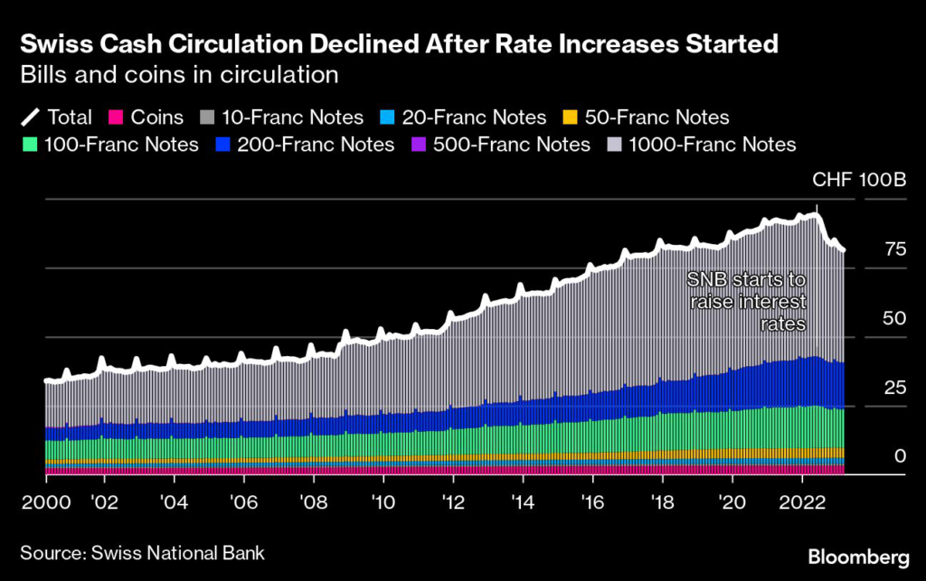 A significant part of that may be held outside the country to store value, especially since more than half of the total is in the form of 1000-franc notes, one of the highest-denomination bills of the world.