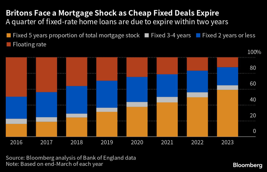 Borrowers feel the impact when they go to refinance fixed-rate deals, with the BOE estimating 1.3 million face that pain between April and December this year.
