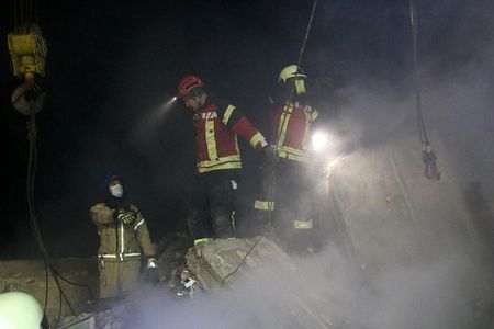 Pictures posted on social media showed rescue teams working at a shattered, smouldering building amid piles of twisted building materials.