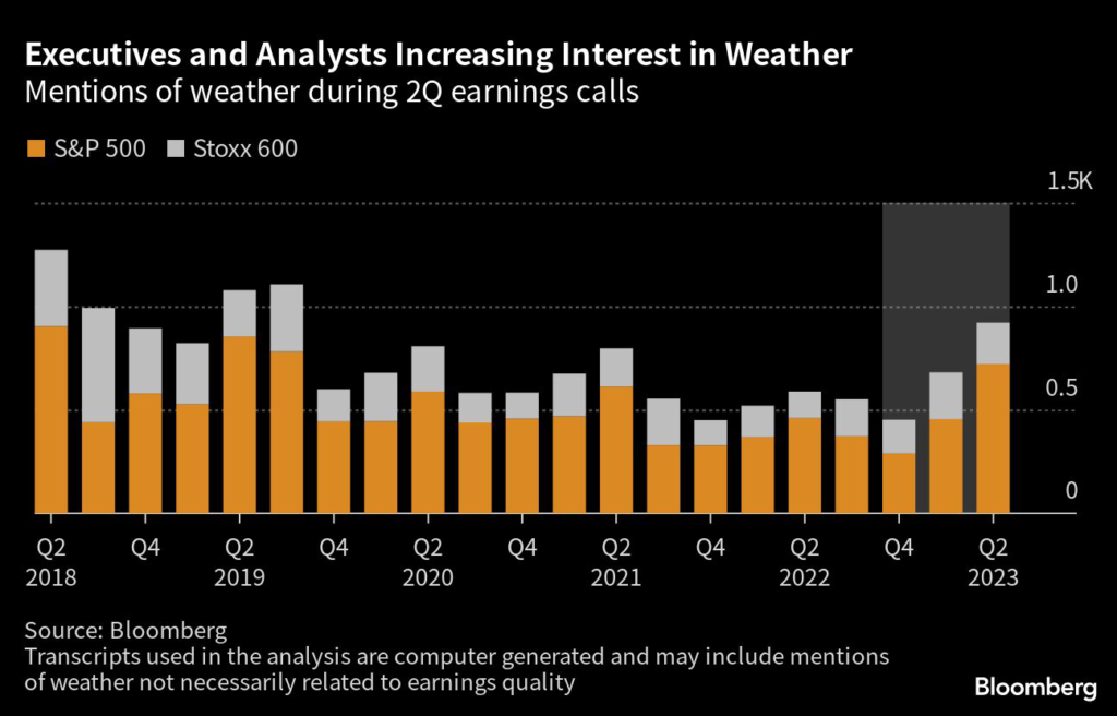 (Bloomberg) — America’s top executives are now spending an increasing amount of time talking about something completely out of their control — the weather.
