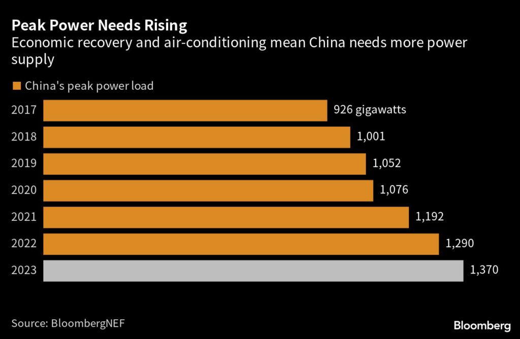 One of the problems plaguing China’s power system is that more instances of extreme heat and rising air-conditioning use are driving a surge in peak demand.