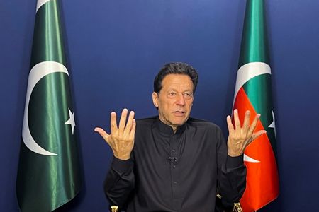 LAHORE, Pakistan (Reuters) – Pakistan’s embattled former Prime Minister Imran Khan has accused the powerful military and its intelligence agency of openly trying to destroy his political party, saying he had “no doubt” he would be tried in a military court and thrown in jail.