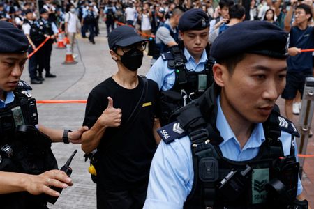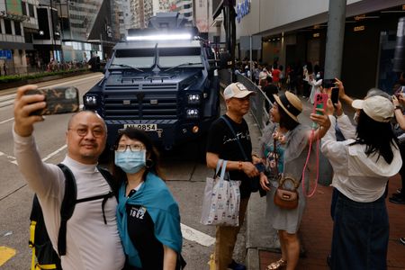 HONG KONG/TAIPEI (Reuters) – Hong Kong police said they detained 23 people on Sunday for “breaching public peace” and arrested a 53-year-old woman for “obstructing police officers” as authorities ramped up security for the 34th anniversary of the 1989 Tiananmen Square crackdown.