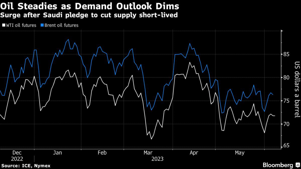 (Bloomberg) — Oil rose amid dollar weakness while traders pointed to the highest refinery runs in the US since 2019 as a harbinger of strong summer demand to come.