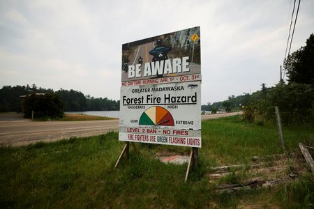 OTTAWA (Reuters) -Hundreds of uncontrolled forest fires blazed across Canada on Wednesday, threatening critical infrastructure, forcing evacuations and sending a blanket of smoky air wafting over U.S.