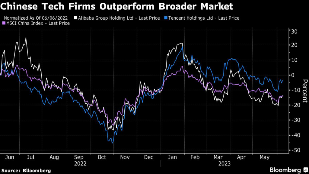 The Hang Seng Tech Index has fallen more than 5% this year, trailing the Nasdaq 100’s gain of 33% as investors soured on Chinese equities.
