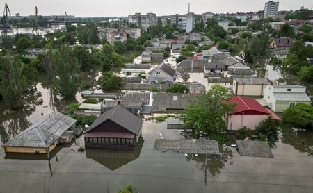 KYIV (Reuters) – About 600 square kilometres, or 230 square miles, of the Kherson region in southern Ukraine was under water on Thursday following the destruction of the Kakhovka hydroelectric dam, the regional governor said.