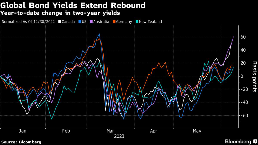 (Bloomberg) — Global bonds are slumping after two shock interest-rate hikes this week served traders a reality check that central banks are far from done fighting inflation.