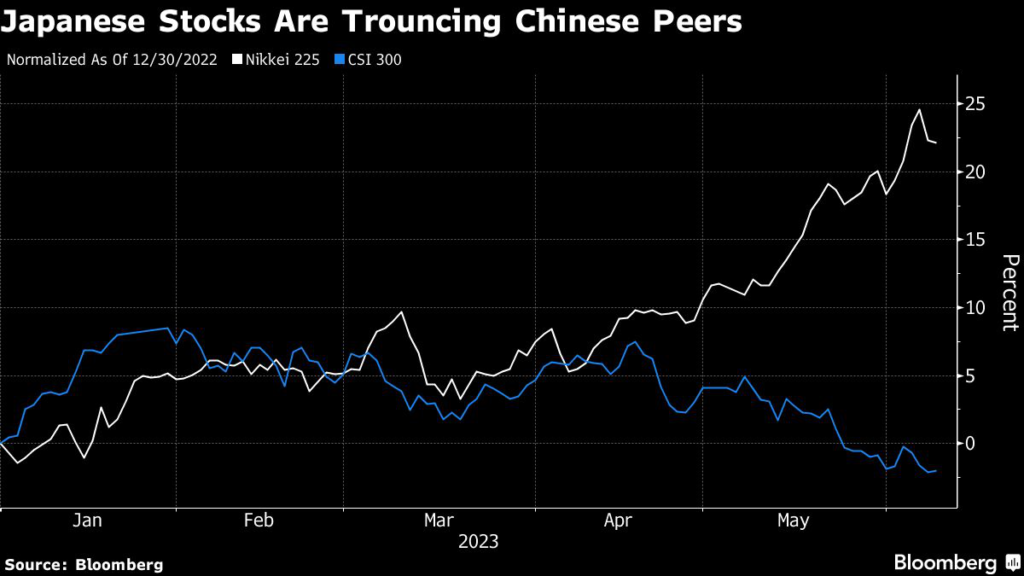 China’s slower-than-expected economic recovery and tensions with the US have frustrated investors. The CSI benchmark has erased all its gains for the year, while Japan’s stocks — buoyed by a revival of inflation and improving corporate governance — have posted double-digit gains in one of the world’s best performances for 2023.