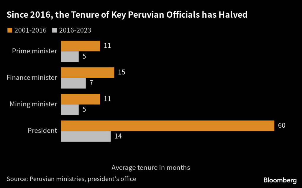 From 2001 to 2016, an era of historic expansion for Peru’s copper production, Peru’s mining ministers served an average tenure of 11 months; since 2016, it has shrunk to five months.