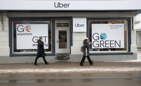 LONDON (Reuters) – U.S. ride-hailing giant Uber said on Thursday that customers will soon be able to track emissions avoided when choosing greener rides and have the option of shared rides in more cities to further reduce CO2 emissions.