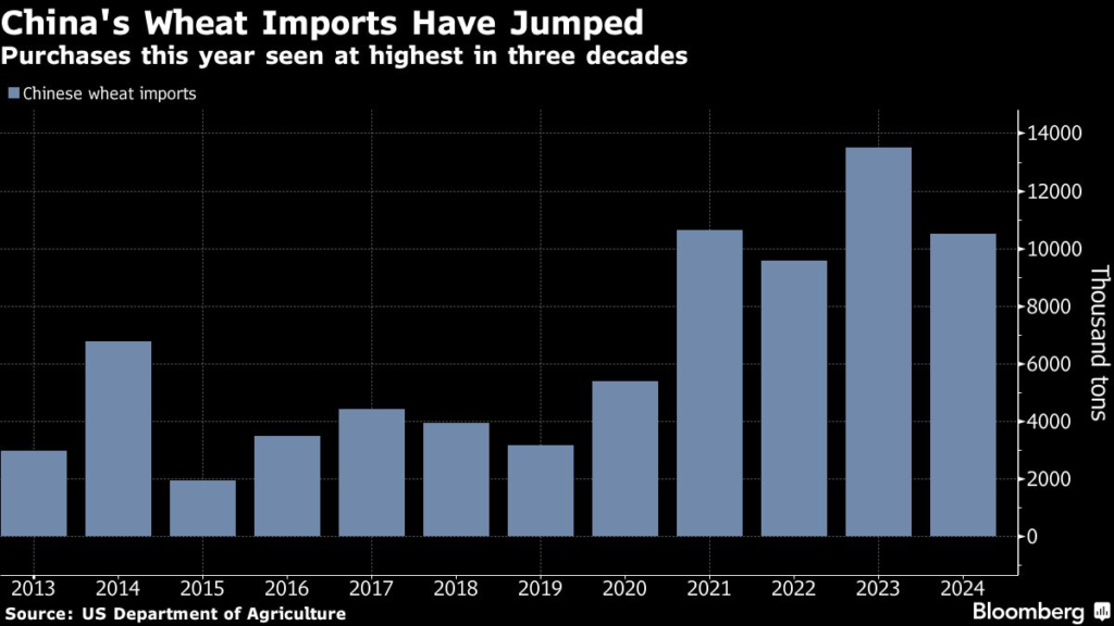 (Bloomberg) — China will feed a lot more of its domestic wheat crop to hogs and poultry this year after heavy rains reduced the quality of the harvest in the biggest growing region, boosting prospects for imports.