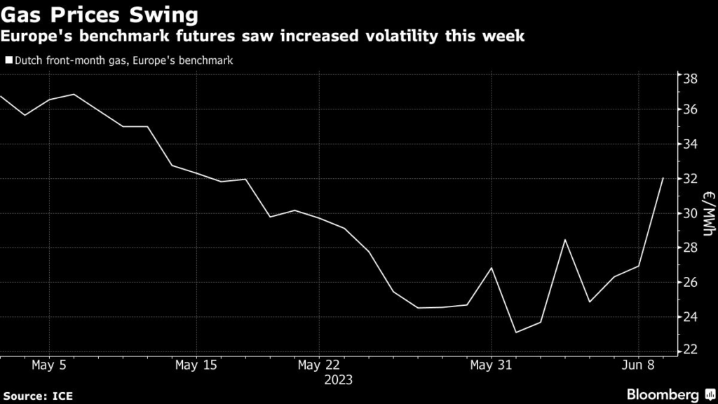 The benchmark contract ended the week 35% higher, the most since last August, at the height of Europe’s energy crisis.
