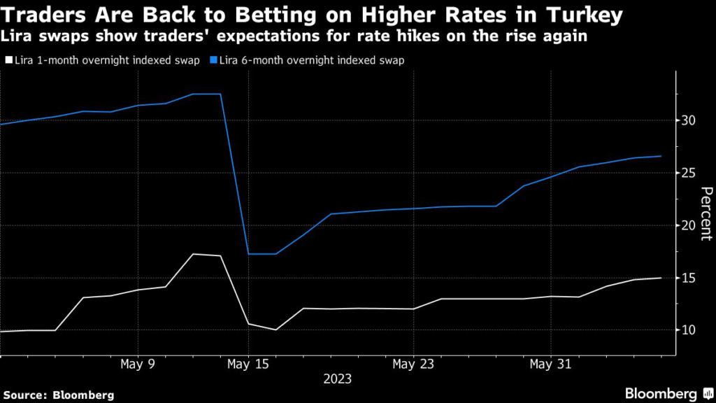 Stocks and dollar bonds rallied following President Recep Tayyip Erdogan’s re-election on May 28, as rumors surfaced he would appoint Mehmet Simsek, an ex-Merrill Lynch strategist, as his finance minister.