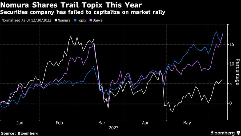 Shares of Nomura have climbed 6% this year, less than the 17% gain in the benchmark Topix, which earlier touched a 33-year high.