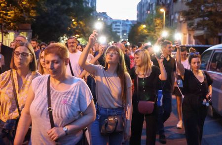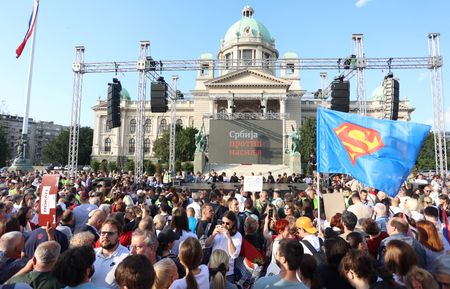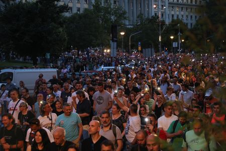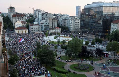 BELGRADE (Reuters) – Tens of thousands of Serbians joined an anti-government protest in Belgrade on Friday for the sixth time since May 3, blaming a culture of violence for the deaths of 18 people in two mass shootings and calling on the interior minister to resign.