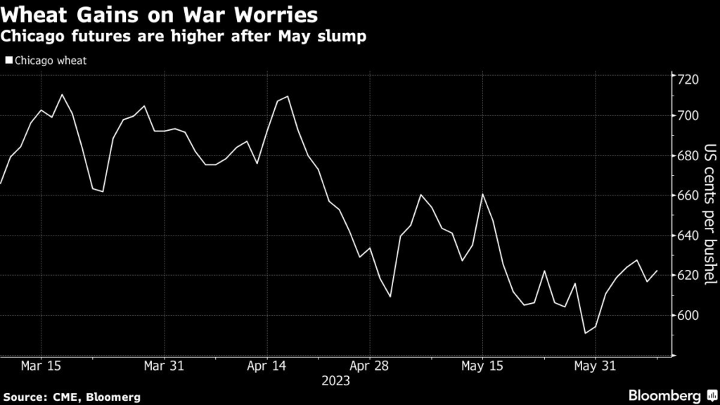 Wheat futures rose as the escalation in fighting deepened worries over grain supplies from the key Black Sea trading hub.