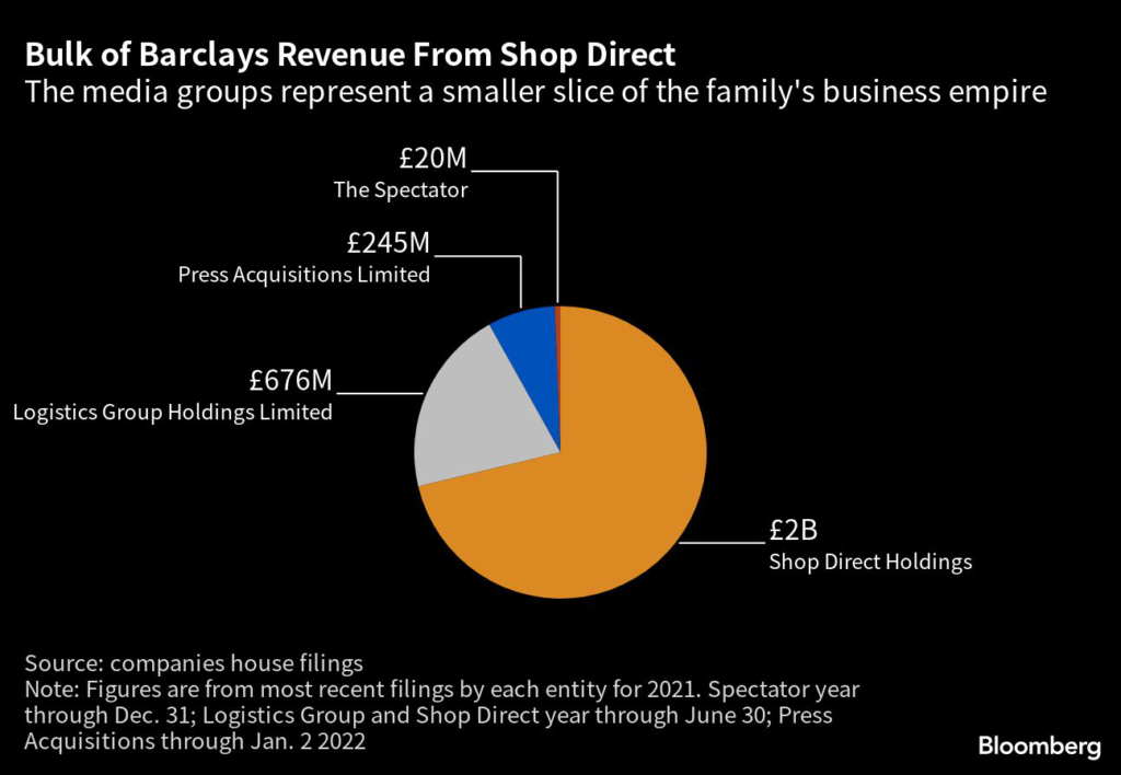 Sitting in a separate structure from the media assets is the family’s e-commerce business Shop Direct Holdings — the holding company for Very Group — which accounted for most of the empire’s revenue in 2020-21, according to company filings.