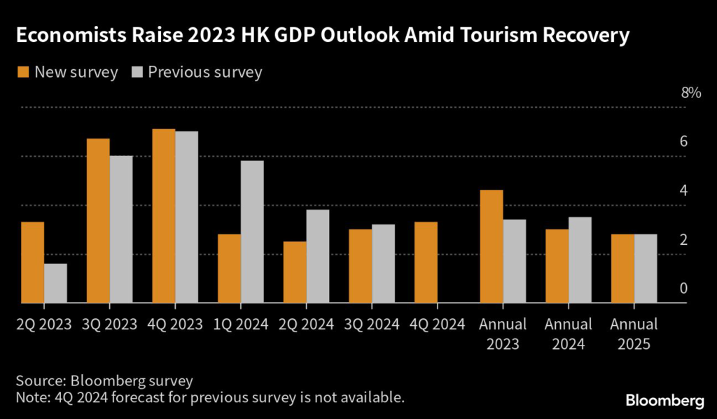 “Hong Kong’s economy continues to see a consumption-driven rebound supported by tourism, boosting its short-term cyclical prospects,” said Gary Ng, a senior economist at Natixis SA.