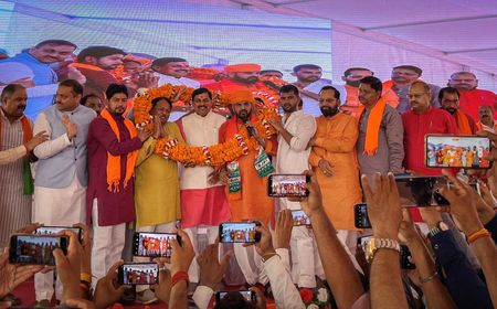 Clad in a saffron robe and turban typically worn by Hindu monks, Singh told a crowd of supporters in scorching heat that he would continue to implement policies introduced by Modi and was committed to serving the people.