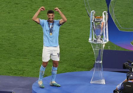 ISTANBUL (Reuters) -Manchester City finally expanded their domestic domination across the continent as they beat Inter Milan 1-0 with a second-half Rodri goal to win the Champions League for the first time and complete a rare treble on a nervous Saturday evening.