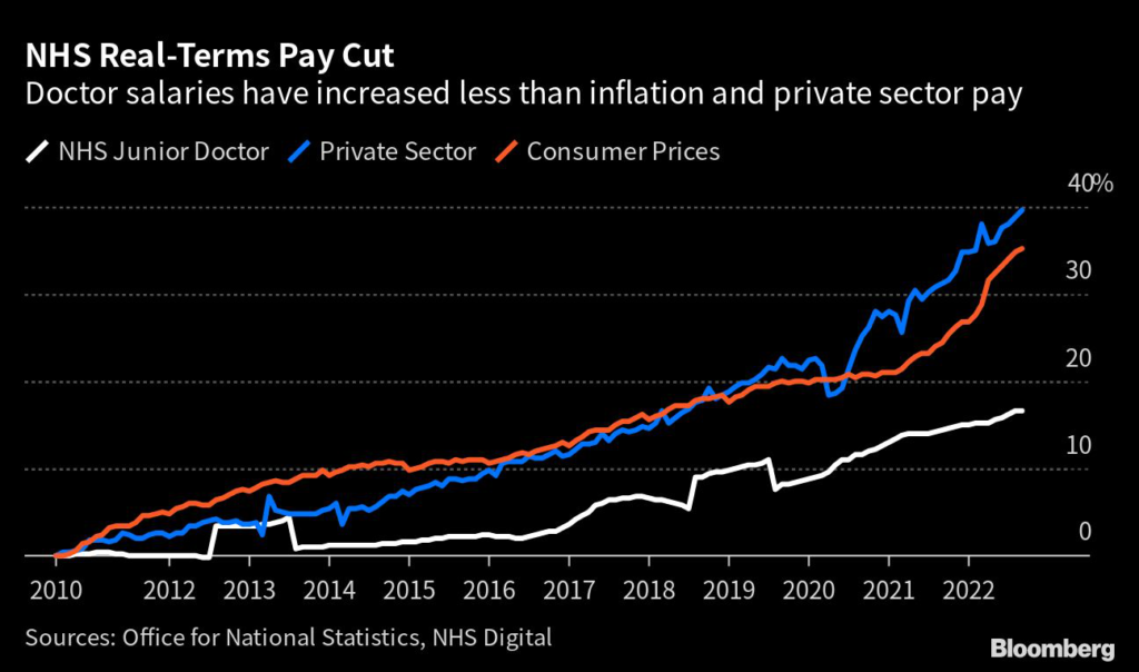 (Bloomberg) — England’s hospitals face major disruption this week when junior doctors begin a three-day walkout in the latest row over pay and conditions.