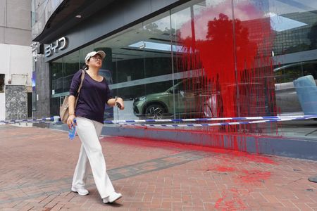 HONG KONG (Reuters) – Three showrooms and service centres in Hong Kong of Chinese automaker BYD Co Ltd were daubed with red paint in the early hours of Monday, police told Reuters.
