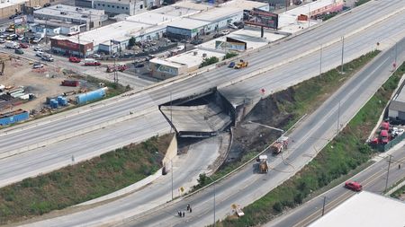 PHILADELPHIA (Reuters) – A portion of a vital highway on the East Coast of the U.S. collapsed in Philadelphia after a tanker truck carrying gasoline caught fire underneath an overpass, officials said on Sunday.