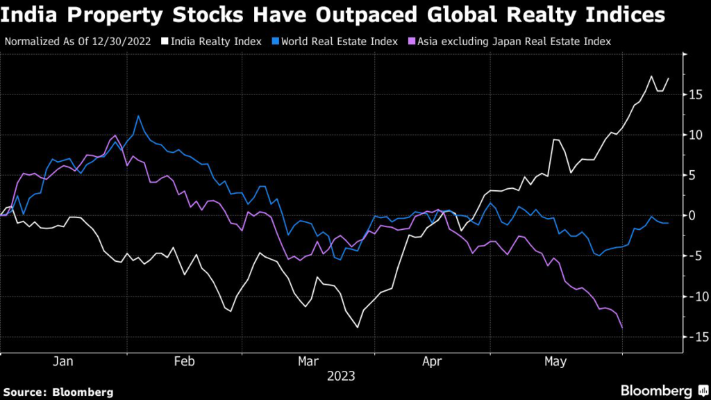 The boom in India is in a sharp contrast to China, where the property sector continues to be in a dire state even after the government ramped up support to facilitate funding and boost demand.
