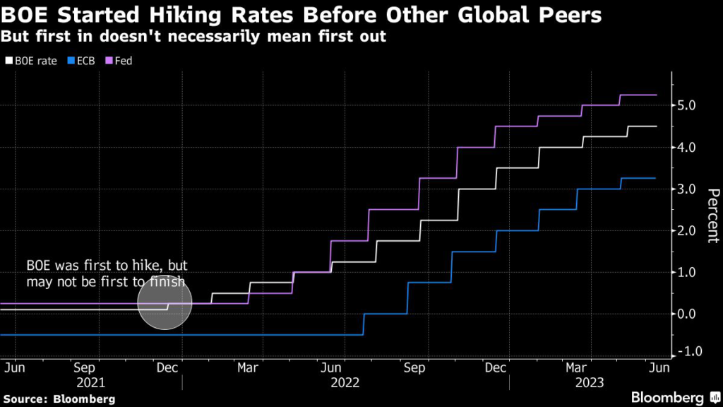 The BOE’s first rate hike came at the end of 2021.