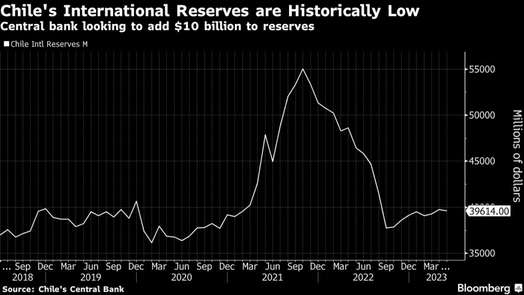 (Bloomberg) — The Chilean central bank’s plan to boost its depleted foreign currency reserves by 25% has roiled the peso and thrown an extra element of uncertainty into monetary policy.