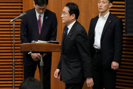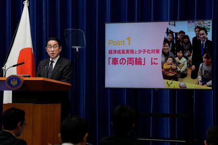 TOKYO (Reuters) -Japanese Prime Minister Fumio Kishida unveiled on Tuesday a package of wide-ranging measures to reverse a dwindling birthrate, saying the problem needed to be tackled as an ageing population threatens the world’s third-largest economy.