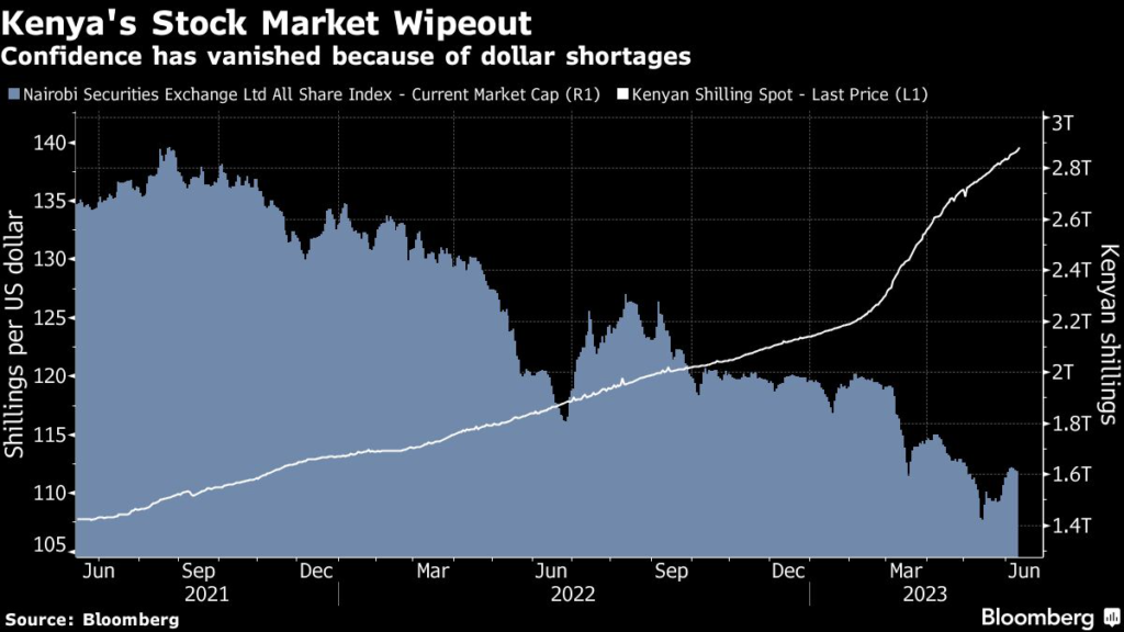 Kenya’s crippling dollar shortage is driving away investors, turning a once-booming stock market into the worst in the world.
