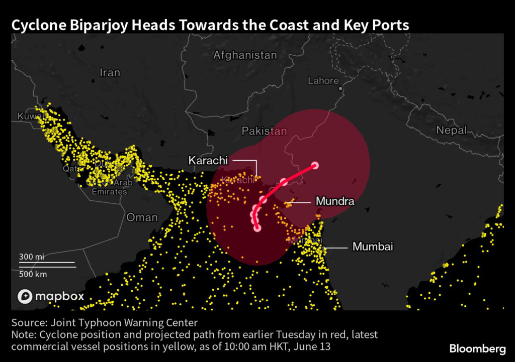 (Bloomberg) — Major oil and container ports have shut in India as a severe cyclone tracks toward the nation’s west coast near Pakistan.