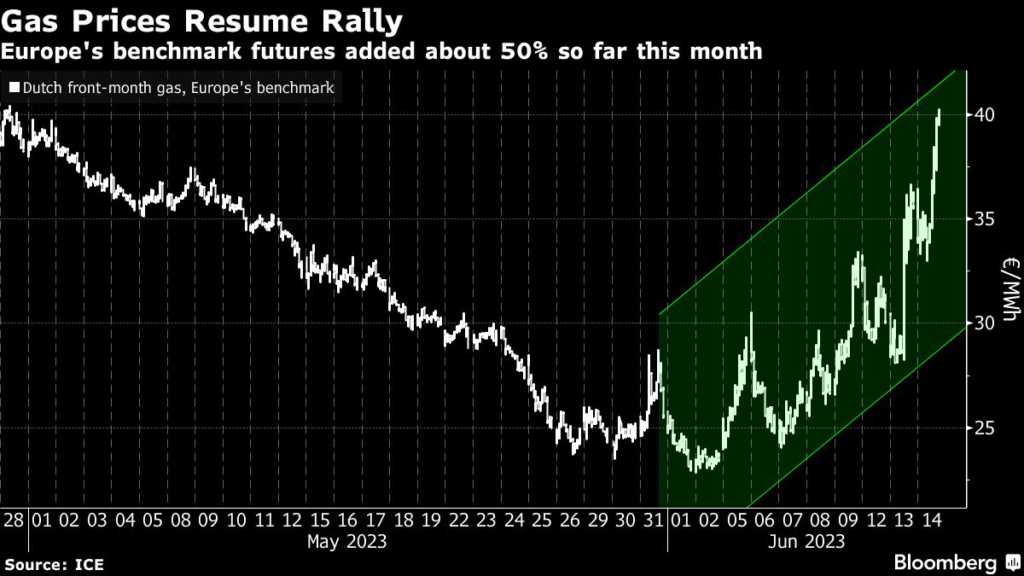 (Bloomberg) — European natural gas resumed its rally as the market tightens amid supply outages and prolonged hot weather.