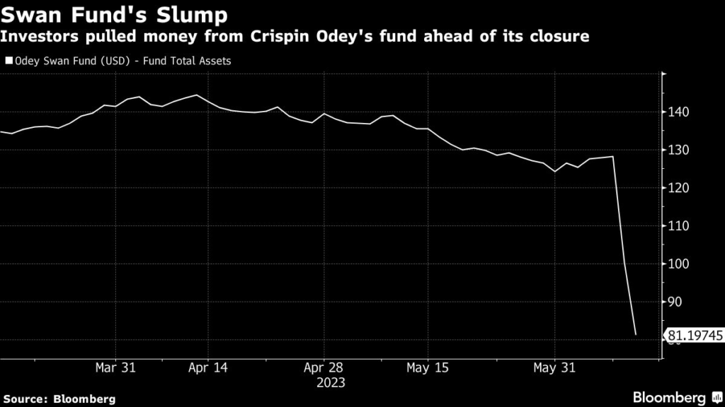 In an investor letter dated June 12, the firm said it had halted all dealings in the Odey Swan fund and will redeem investors by Sept. 4. The fund, whose assets reached a peak of about $690 million in 2016, has lost about 4% since Thursday.