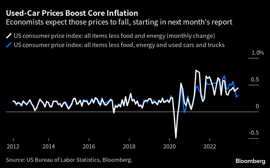 (Bloomberg) — The jump in used-car costs that propped up US inflation last month is widely expected to swing into reverse in June, finally delivering a slowdown in one of the most-watched price gauges.