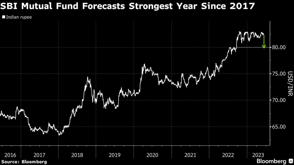 (Bloomberg) — India’s largest asset manager is forecasting a stronger performance for the rupee in the second half of the year, helped by easing oil prices and cooling intervention by the central bank.