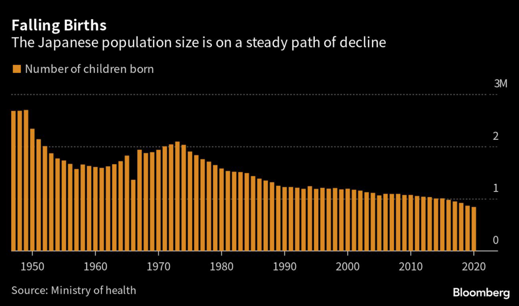 If the country doesn’t succeed in improving its declining birthrate, its population is set to roughly halve from 2004’s levels to around 64 million by 2100, according to the National Institute of Population and Social Security Research data compiled by the cabinet office.