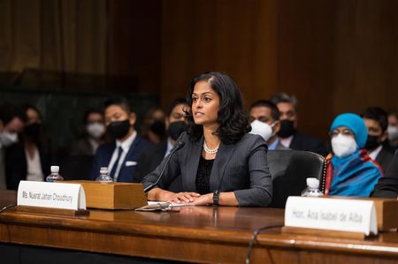 (Reuters) -The U.S. Senate on Thursday narrowly confirmed civil rights lawyer Nusrat Choudhury to the U.S. District Court for the Eastern District of New York, making her the first Bangladeshi-American and female Muslim federal judge in the United States.