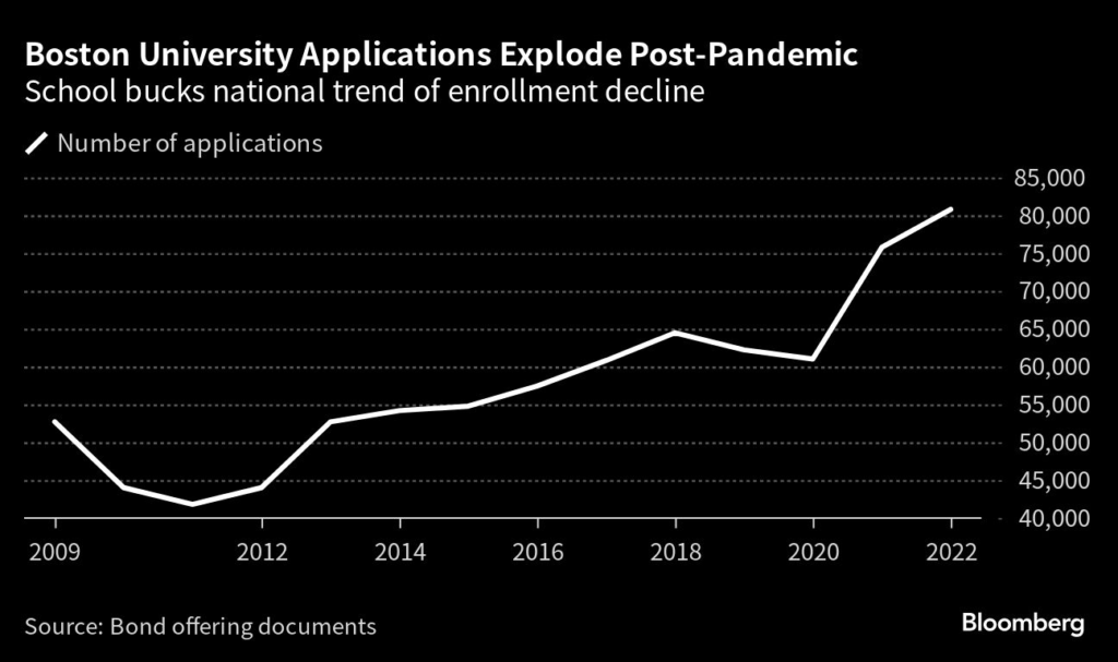 “Boston University is a great example of this trend; the up-tick in applications was driven by pent-up demand, as well as the lack of a testing requirement,” she continued in an email.